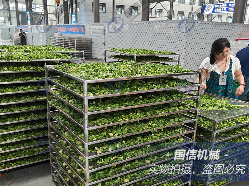 2025年5月16日,客戶帶幾百斤芹菜來廠試機烘干,不僅要烘干后的芹菜干,烘干中產生的冷凝水也要打包二次加工再出售,芹菜烘干全程用了十個小時左右,成品